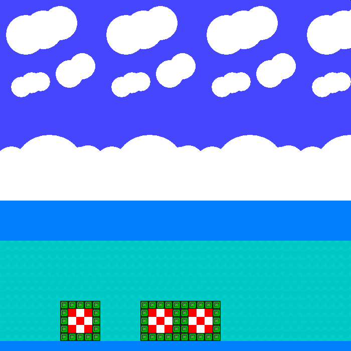 Background is now like the final game, only missing the water and having just three islets. Like the above screen one of the water background layers are still left in its original position, but invisible.