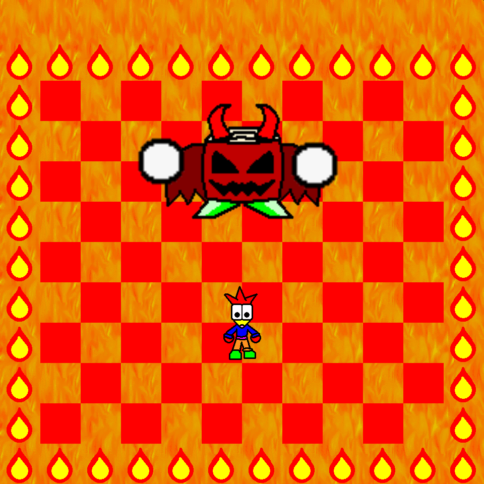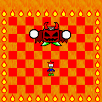 Room is now how it is in the final game, except the boss's hands are bigger, and Kazooa starts off-center facing down. The playfield is also 8x4 blocks rather than 8x3 blocks.