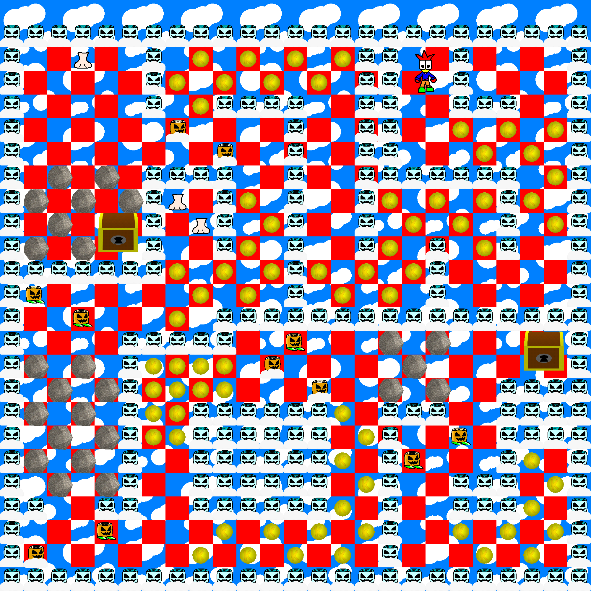 A treasure chest was added at the upper right corner. The hidden item spot was removed, and two more Cloudstock enemies were added.