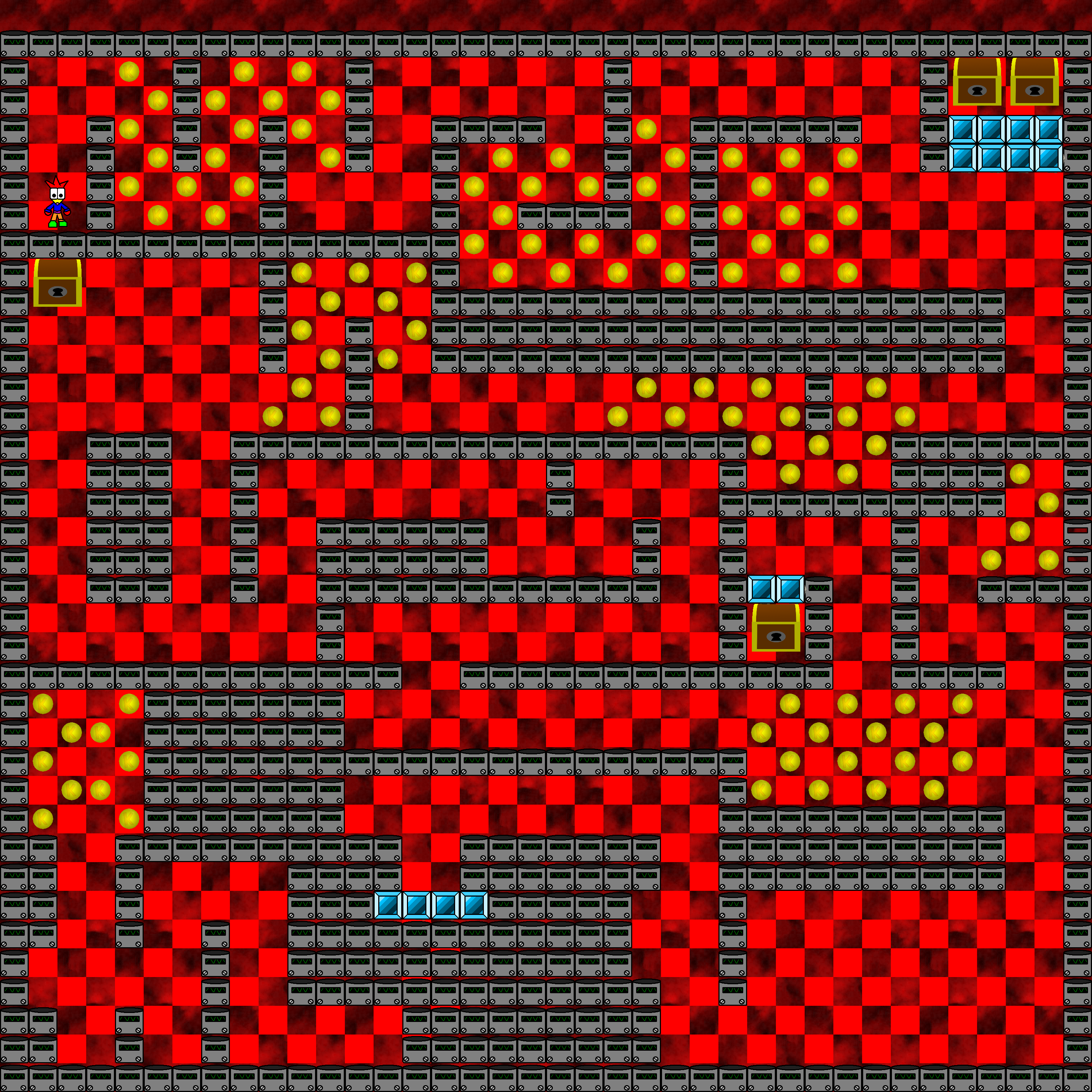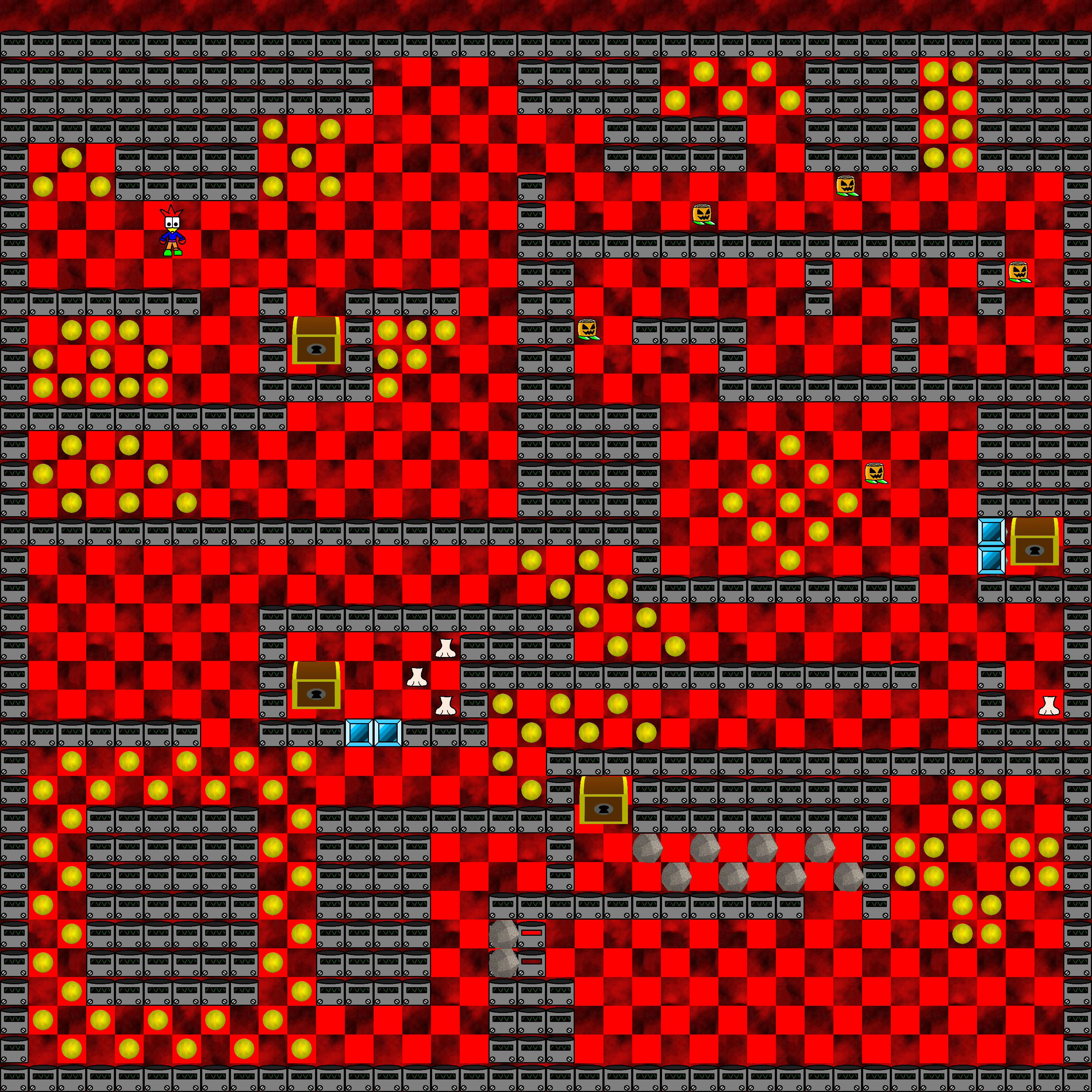 This is the first build where the hollow walls have been fixed to use the same wall object that doesn't appear in front of the player. The bazooka enemies have been implemented, and the tank enemy was added back, although shifted two tiles to the left from its position in the final game.