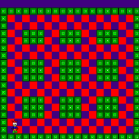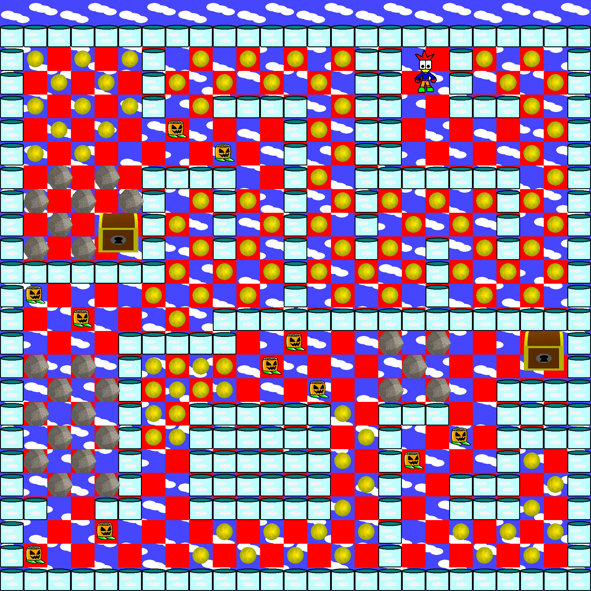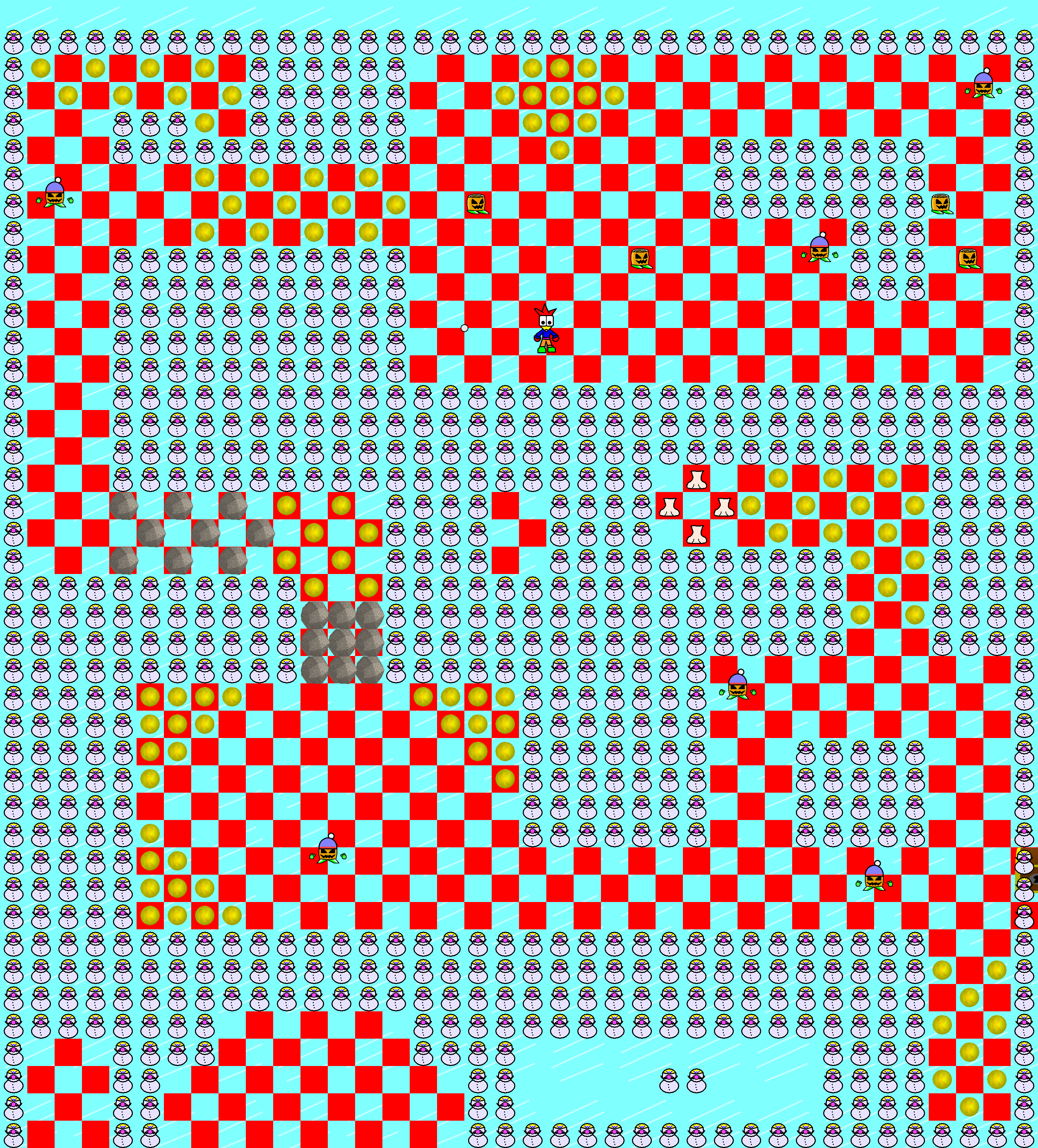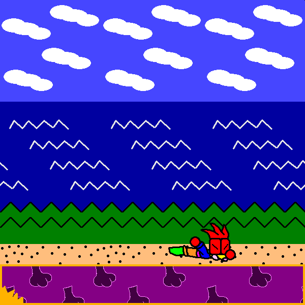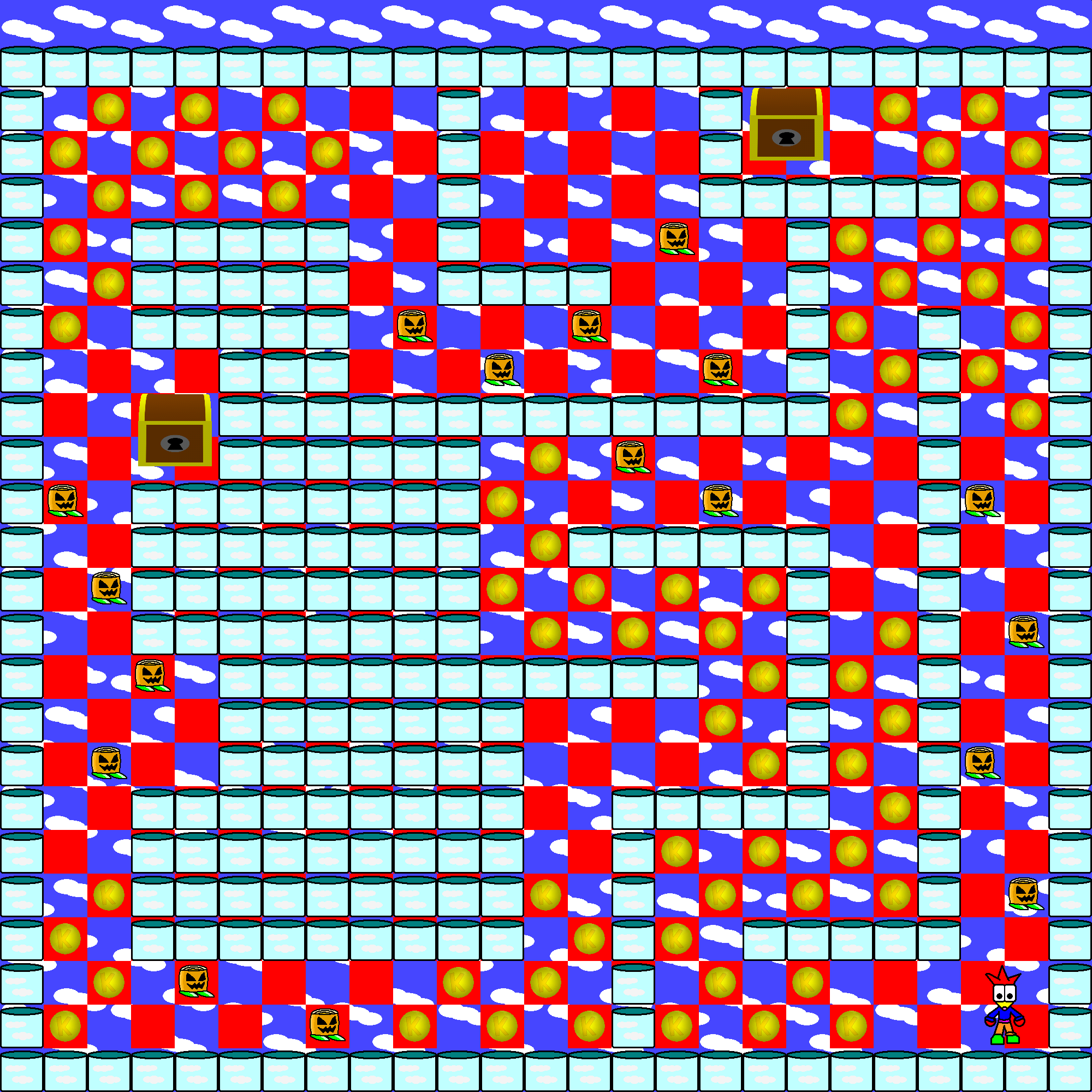 Test room for the World 1 boss. For the majority of these test rooms, they never changed very much besides the graphics. The room size was never even adjusted to fix the bottom and right corners being cut off. The purple background from World 1 in this prototype was also left alone.