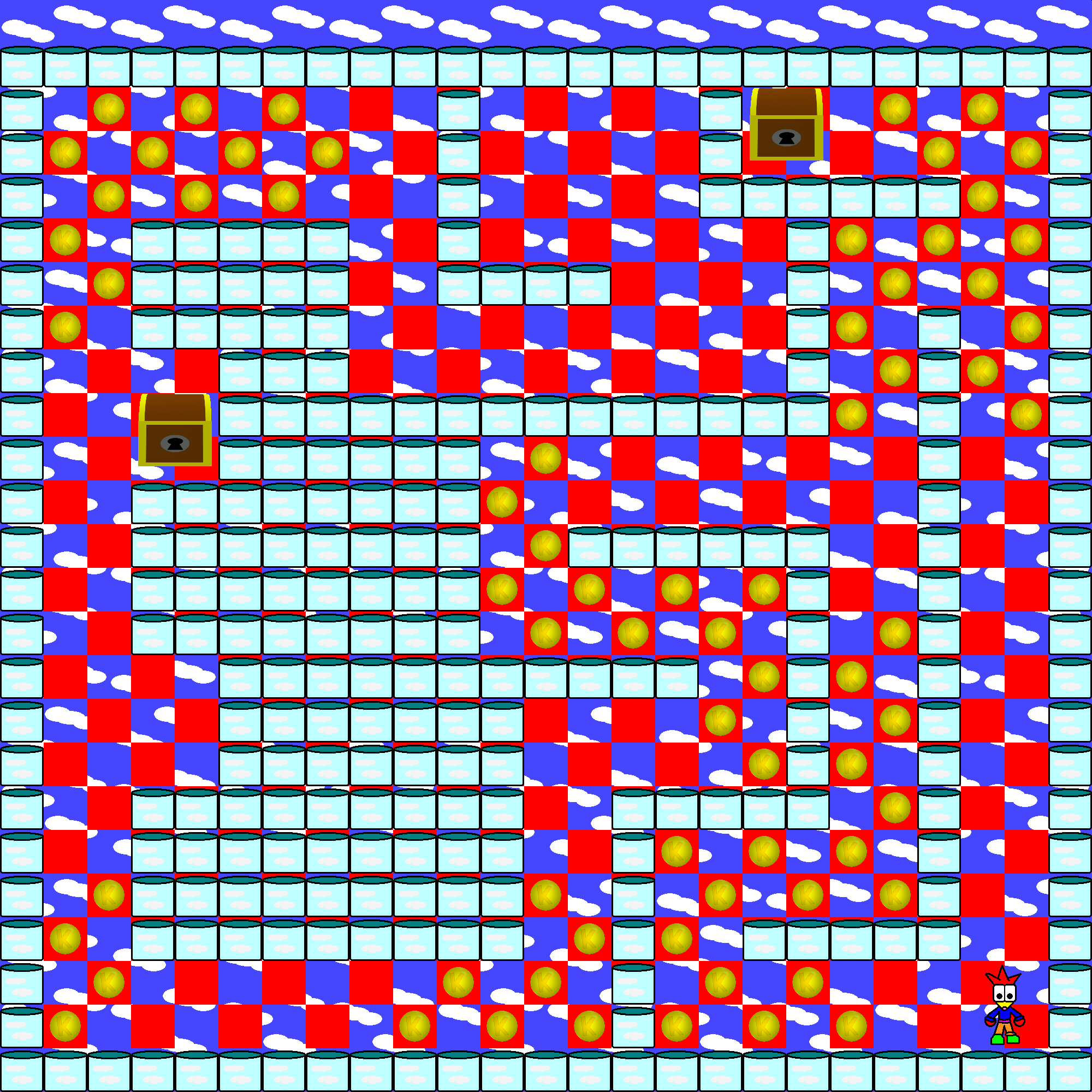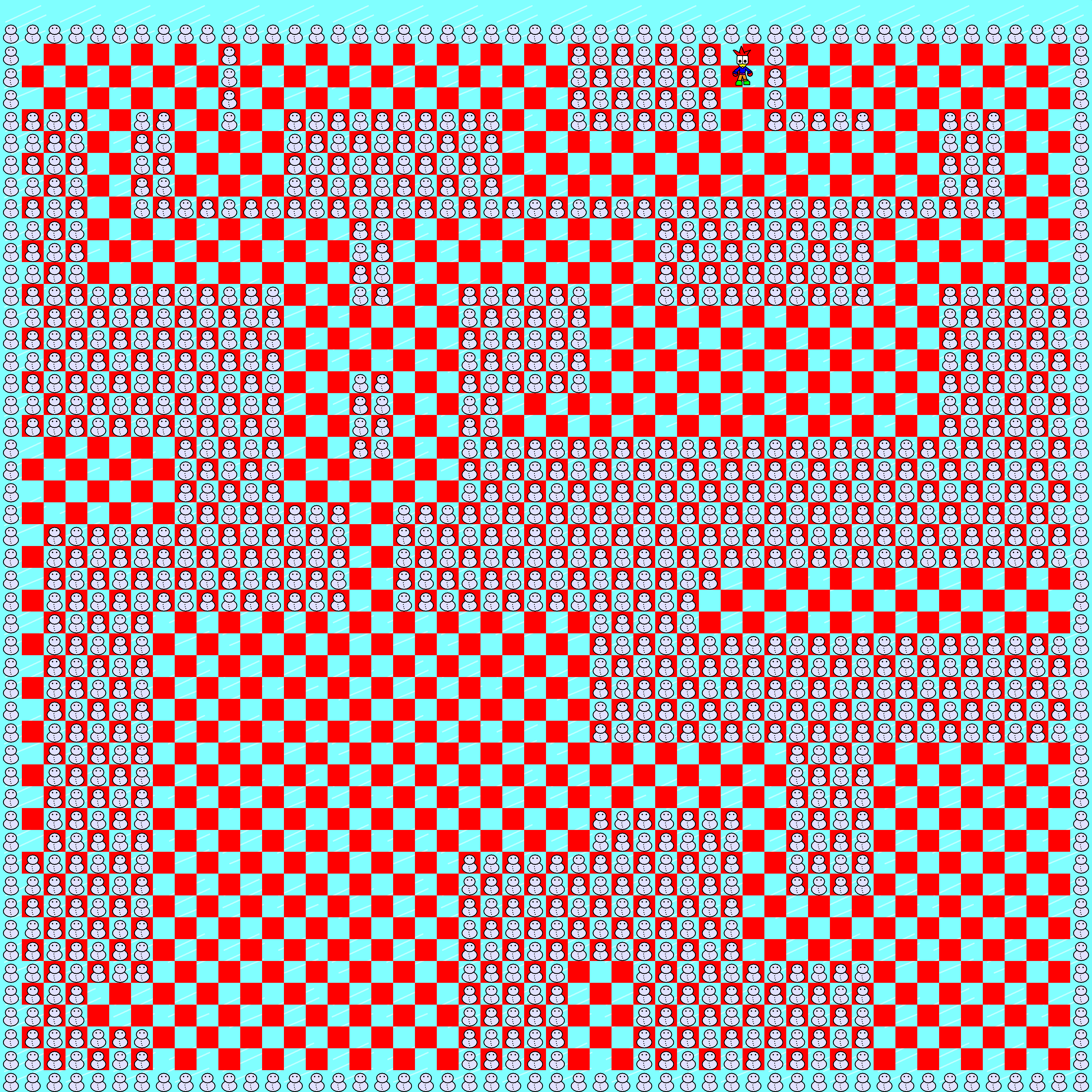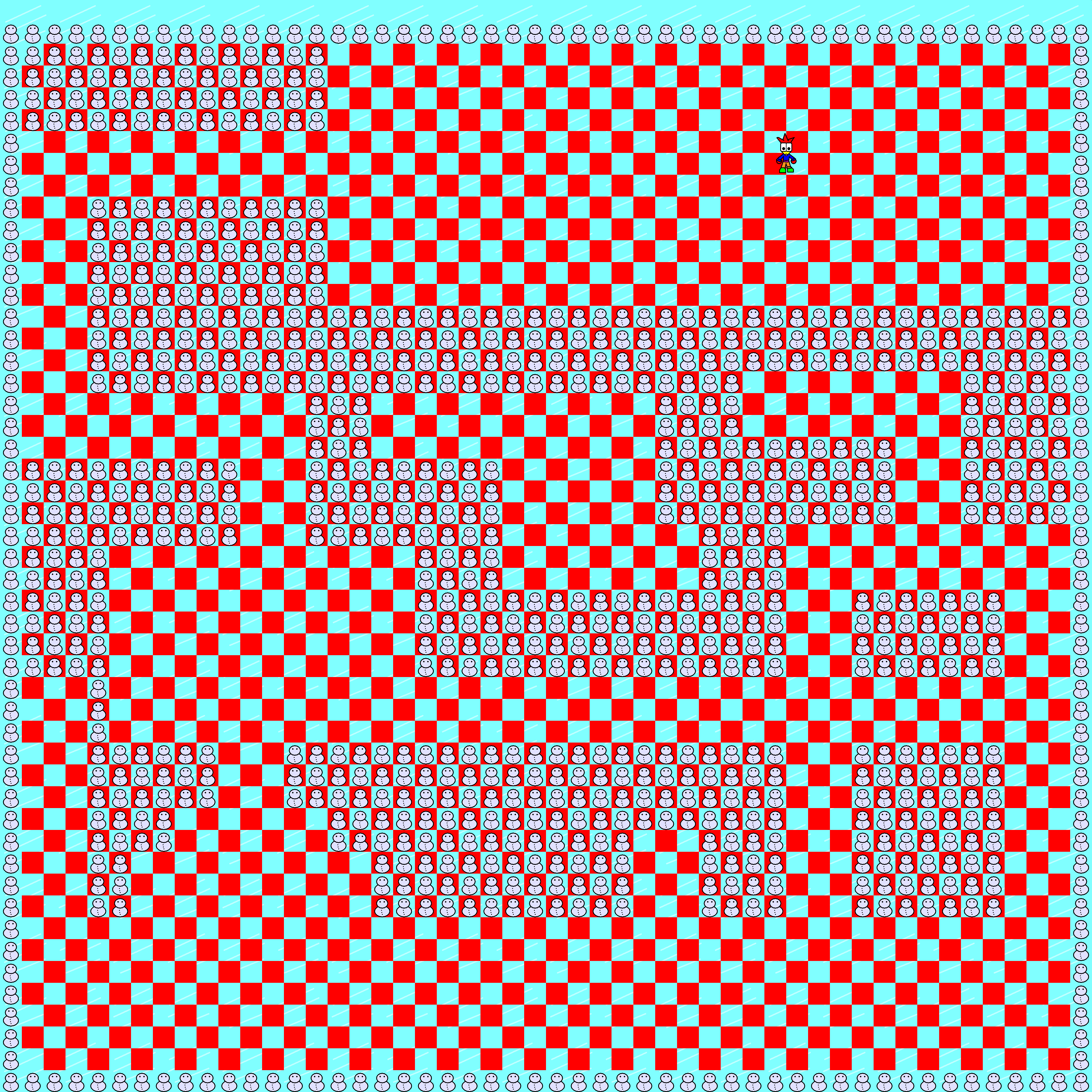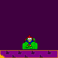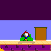 Room height is 1200 pixels instead of 960 pixels. Everything is shifted sown, with the end of the spotlight being visible. Background is a different shade of blue, and the effect behind Kazooa flashes a rainbow of colors as opposed to the various blue shades in the final. In addition to the dialogue border already being drawn on screen, a similar, but separate object that isn't following the view is placed at the coordinates. If I remember correctly, I must have placed it there to see if the border was drawn at the correct height.