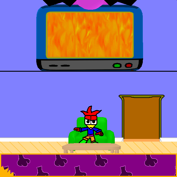 Exactly the same as in demo 0.7, except the TV is now here, and quite off-center. It is possible the TV was aligned to be exactly in the center at one point, but a change made within the sprite's origin settings shifted its position.