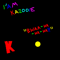 Background changed to a placeholder graphic showing the texts "I'AM KAZOOIE" and ""BWAA-HA-HA-HA!!"", along with a red "K" and a coin.