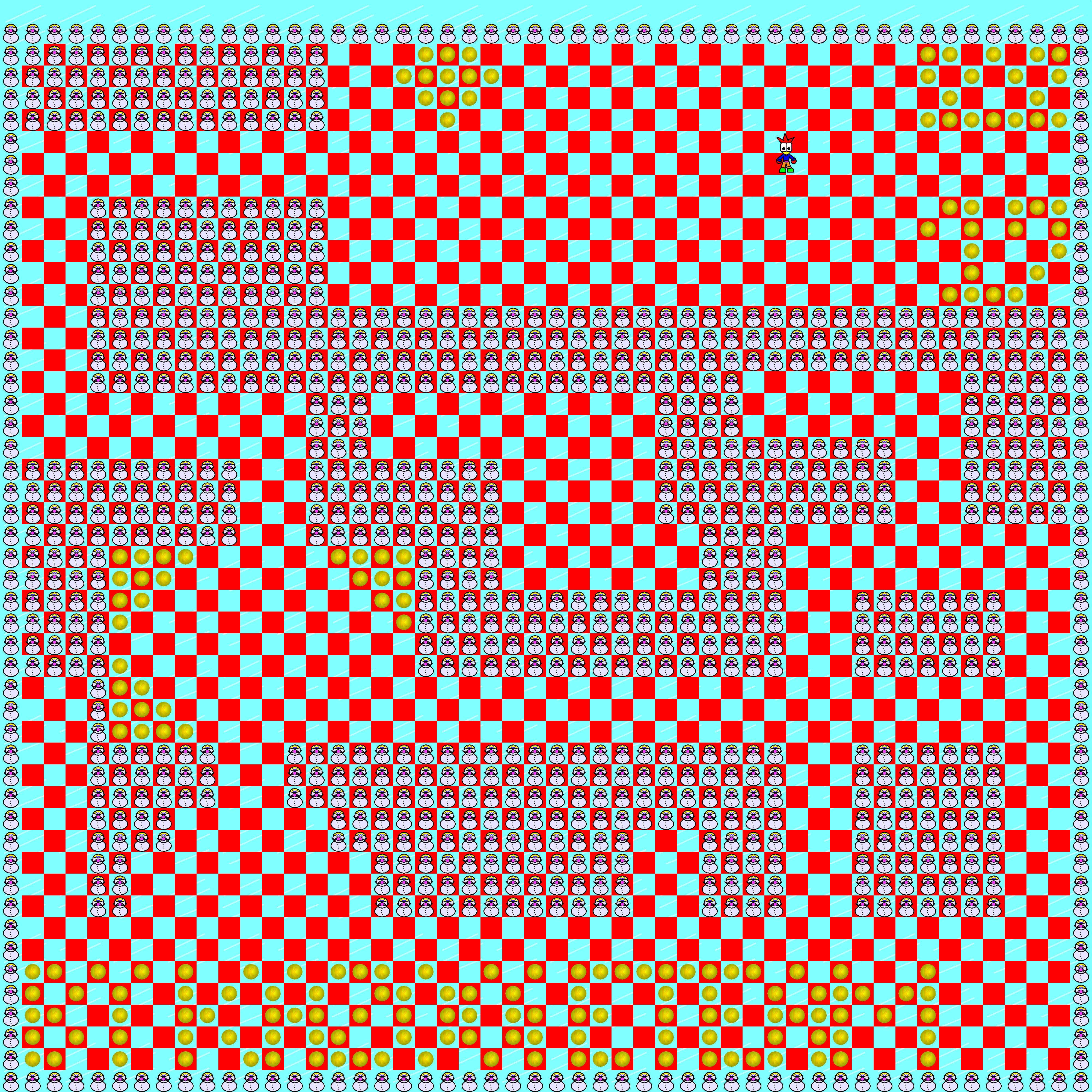 Level has been redesigned to work around performance issues on WinXP(at the time early development of the game occured, that is.). Also shows more clearly the spot where the hidden treasure chest is located in the final version, whose treasure would end up not having any kind of reward coded when picking it up