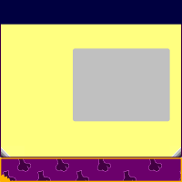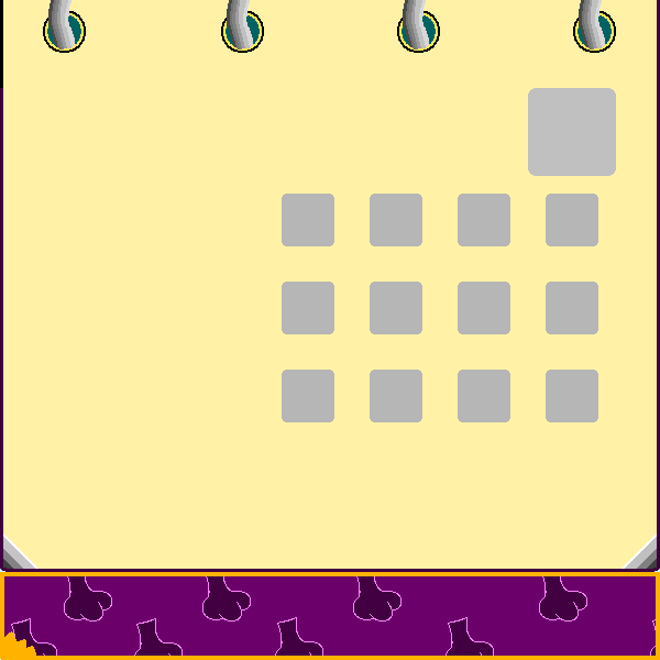 The large rounded rectangle was broken off into 12 smaller ones, and a slightly bigger one was added on top of the 4th upper right rectangle. This is probably where the image of the treasure would have been displayed. It was moved to the left side in later builds due to the pictures requiring a bigger size.