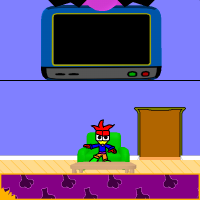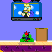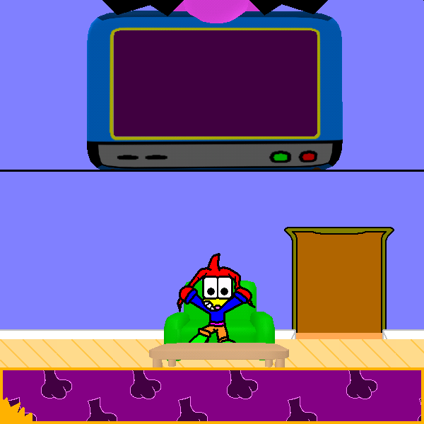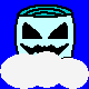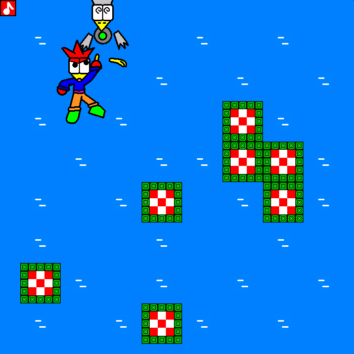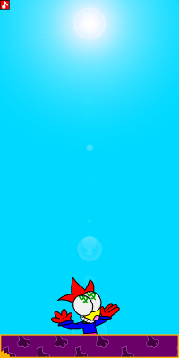 Earlier designs for the World 2 wall graphic. Frame 1 is similar to the used graphic, but the bottom isn't completely filled in, making it appear more cloud-like. Frame 4 is a attempt to make the wall graphic from scratch. I found it unsatisfactory and decided to recycle a graphic from one of the base images to use as the final version of the wall graphic.