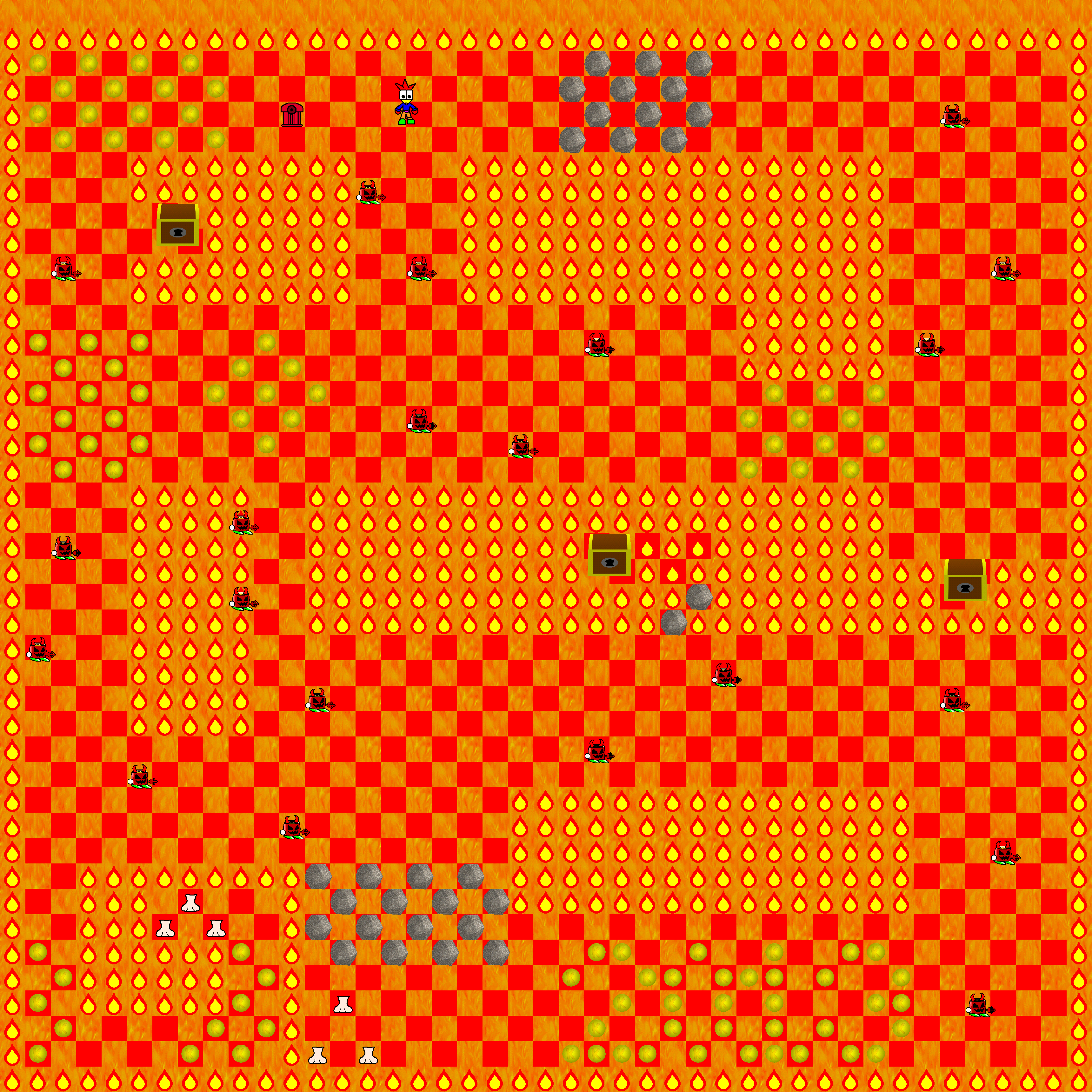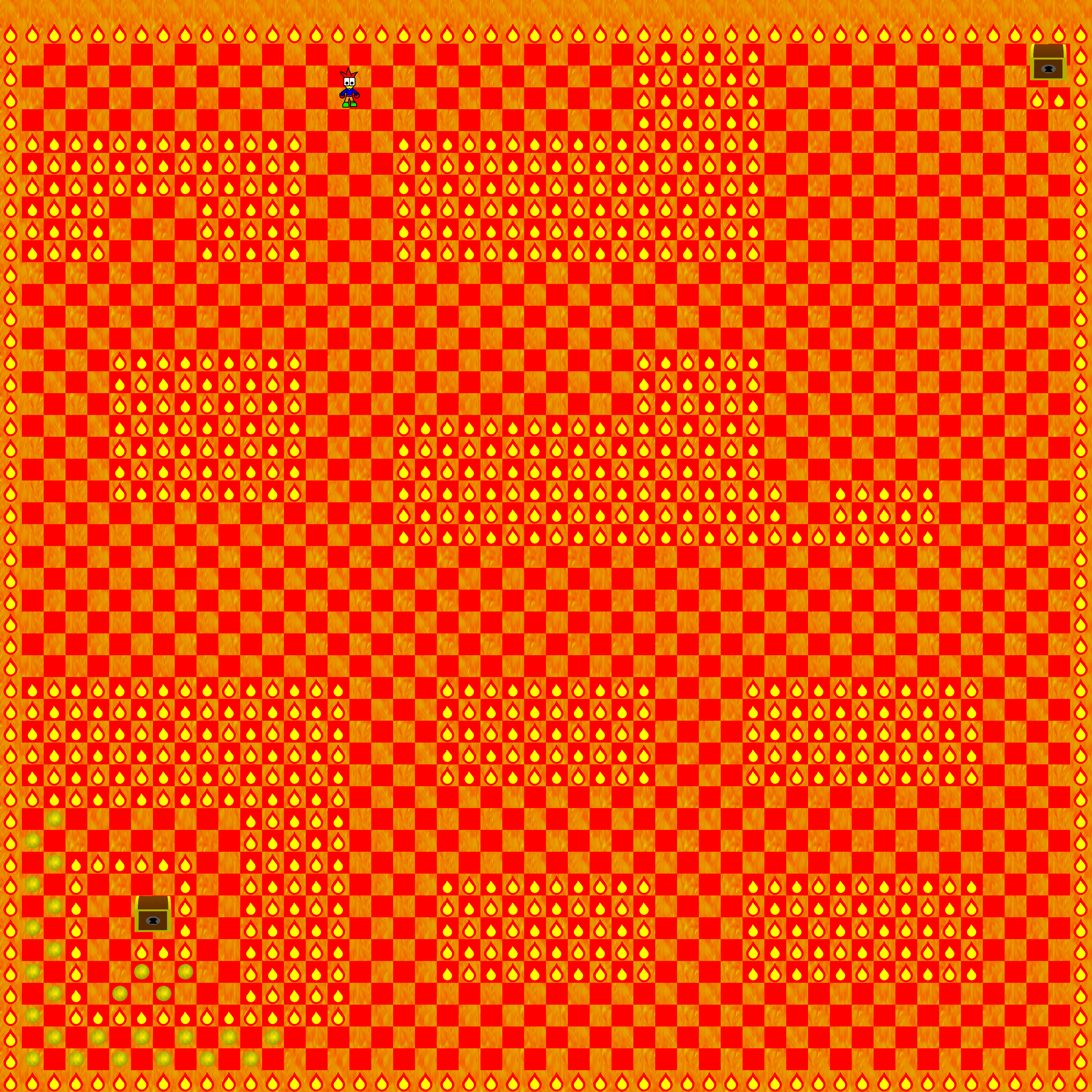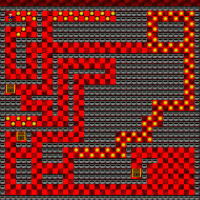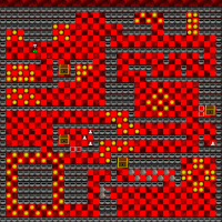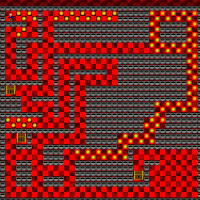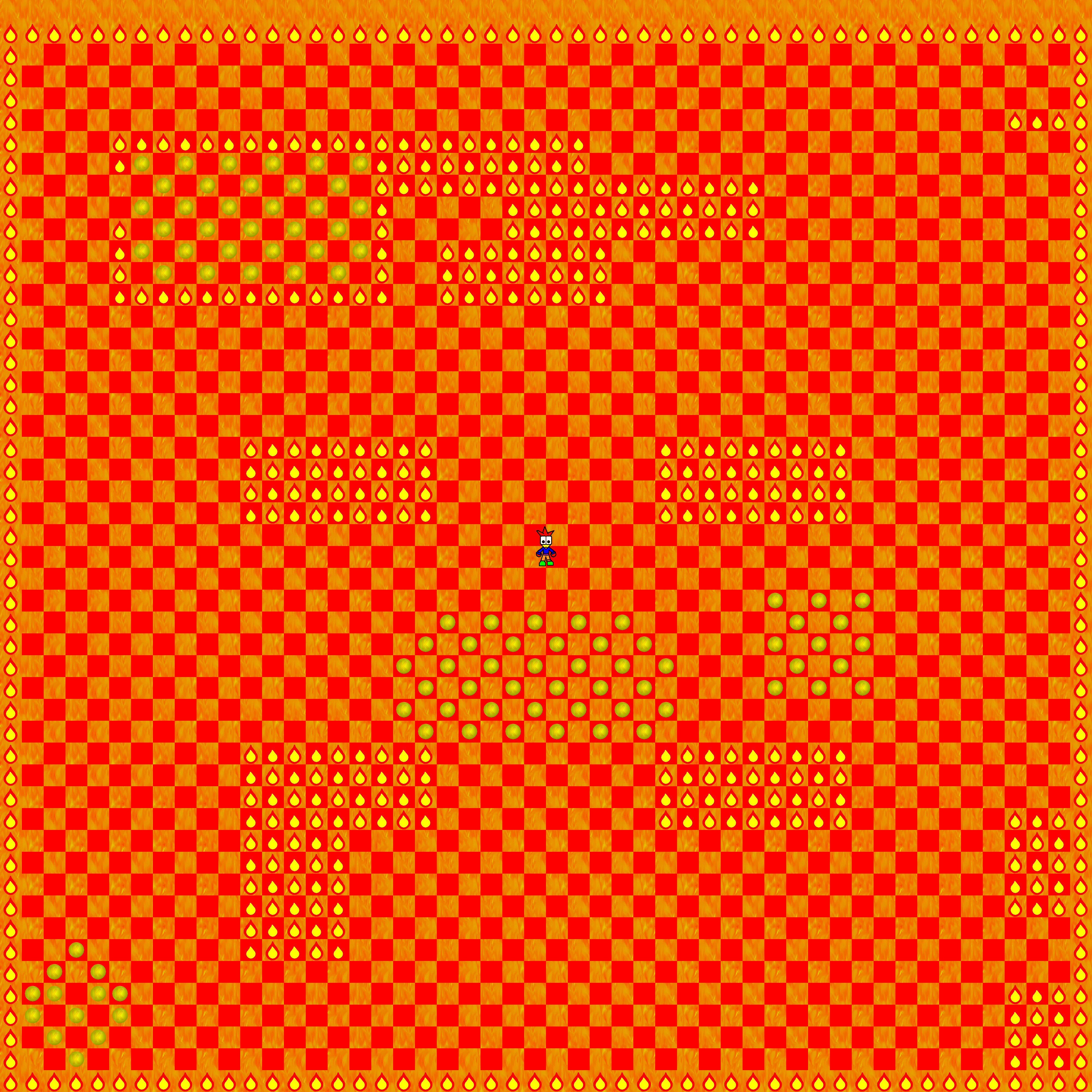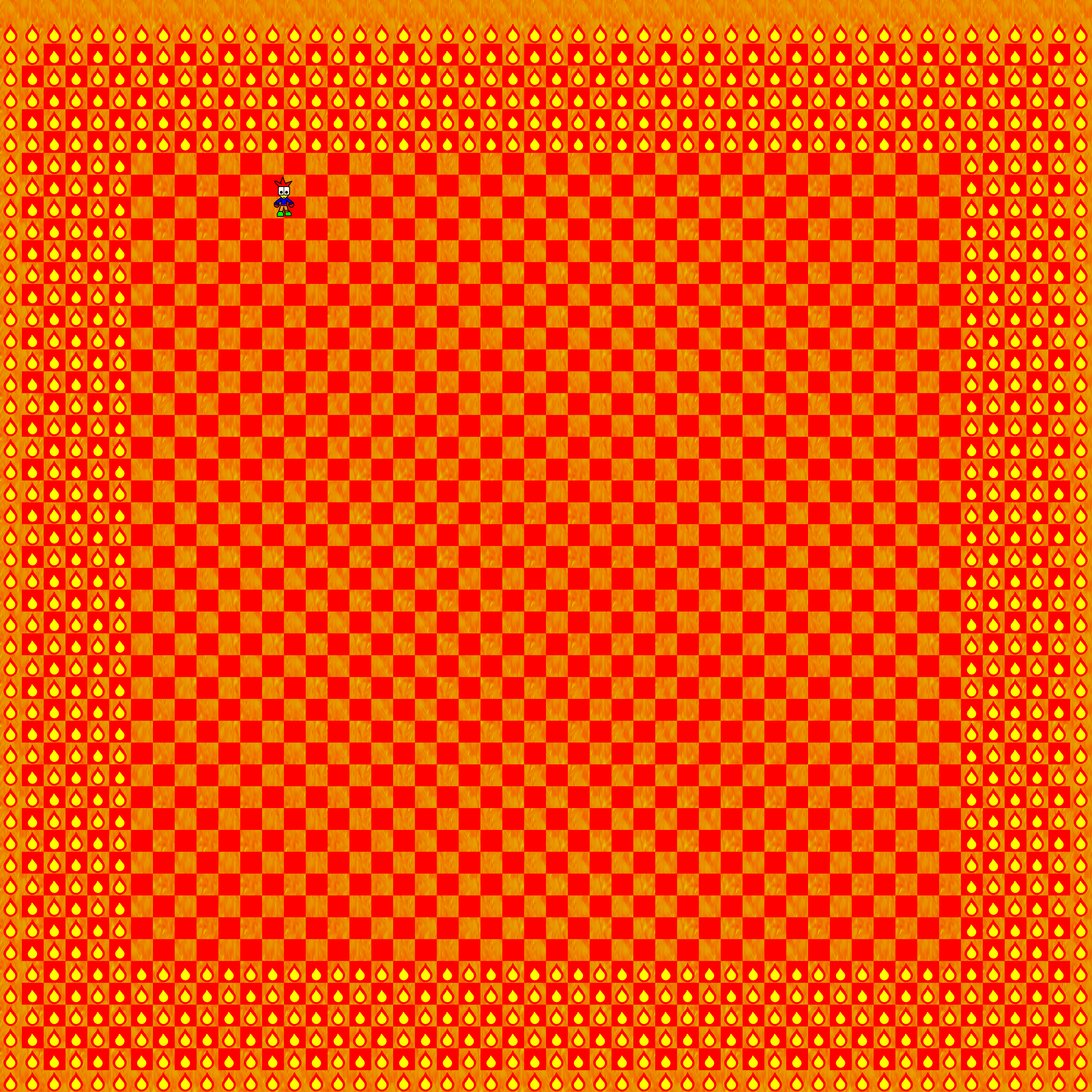 Level has been redesigned to work around performance issues on WinXP(at the time early development of the game occured, that is.). The wall graphic was changed to a torch-like thing where the flames would be. It was reverted back due to the possibility of having to place separate flame objects on top of them, which would have made the game's frame rate dip down considerably, and the graphic not looking very good.