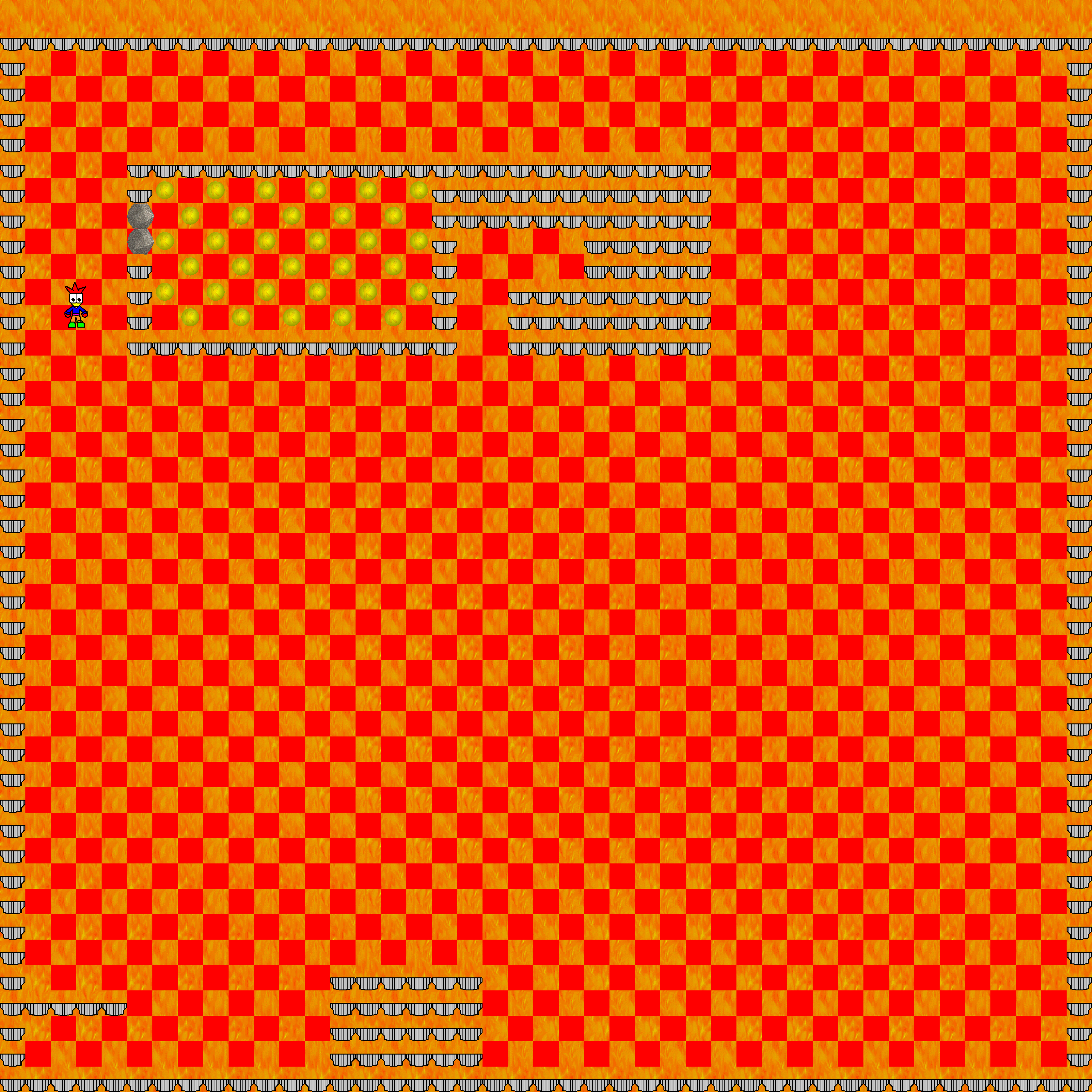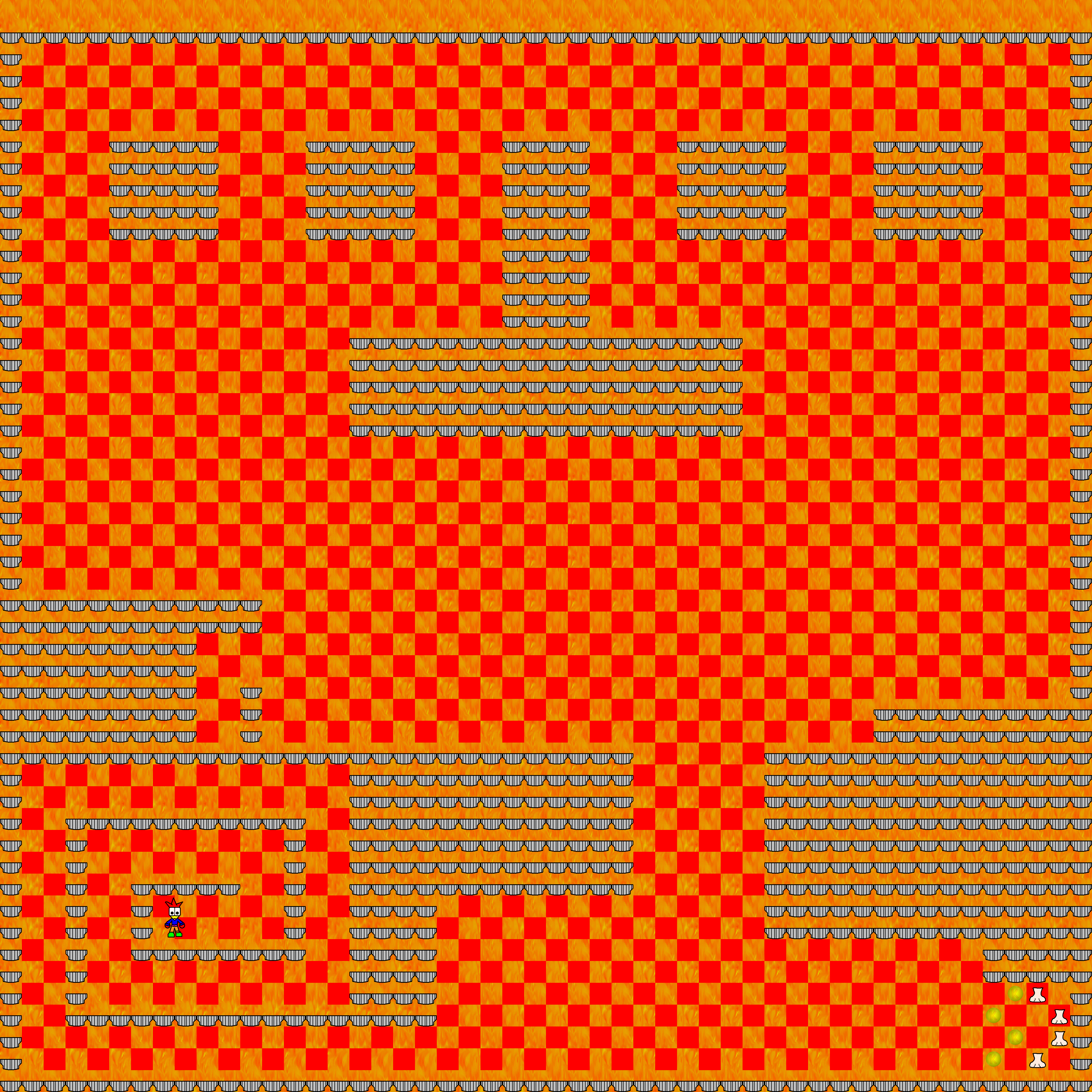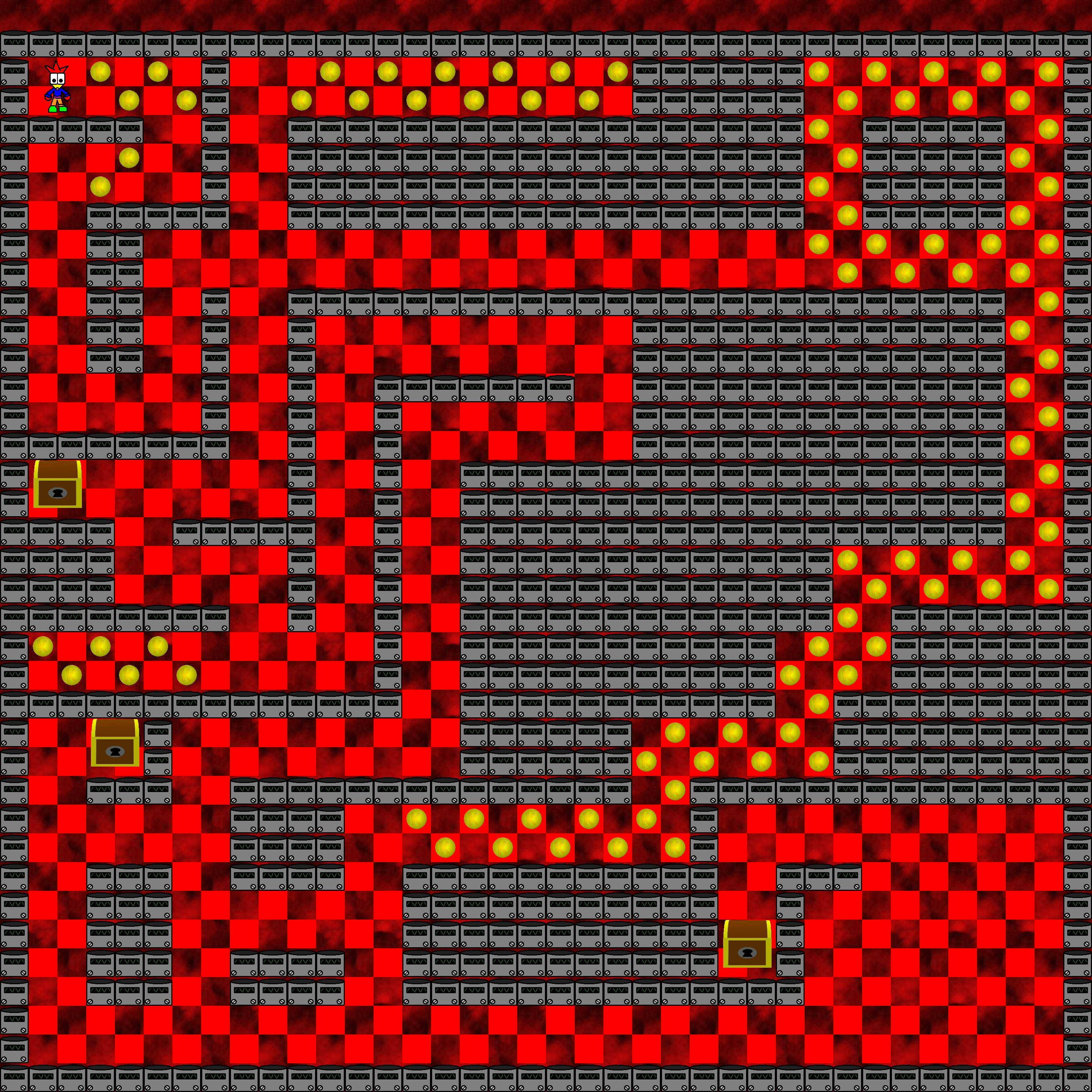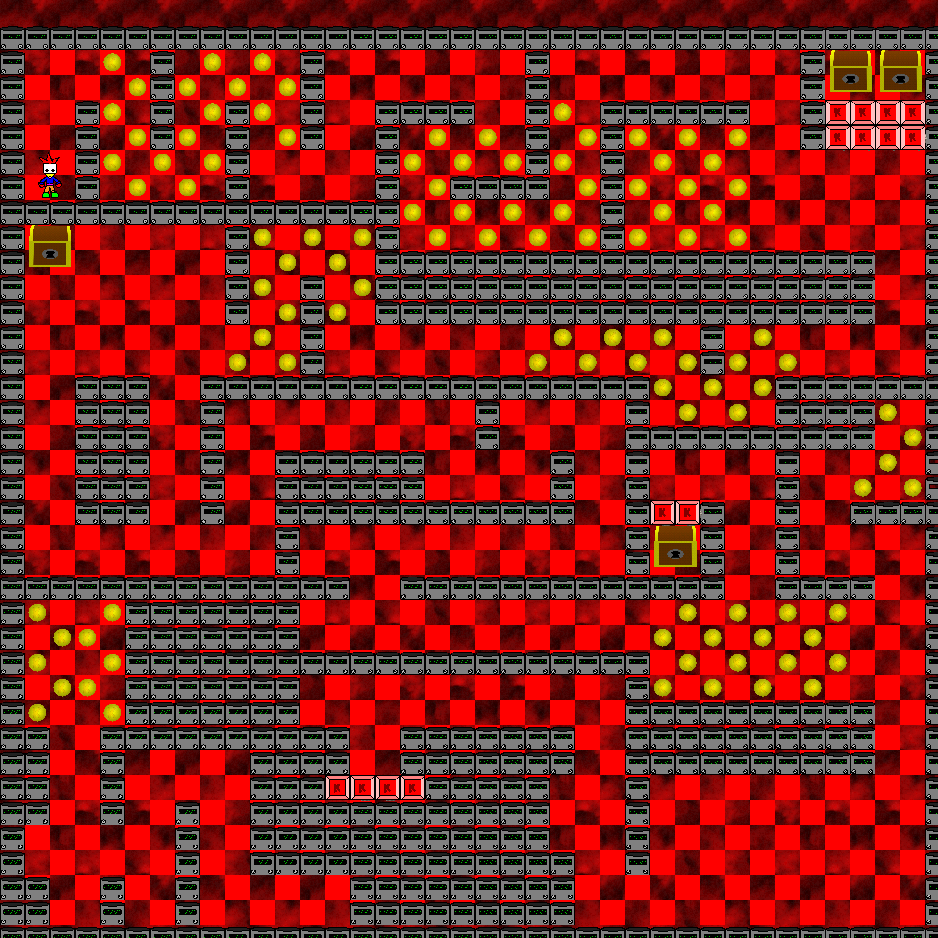 Level has been redesigned to work around performance issues on WinXP(at the time early development of the game occured, that is.). The wall graphic was changed to a torch-like thing where the flames would be. It was reverted back due to the possibility of having to place separate flame objects on top of them, which would have made the game's frame rate dip down considerably, and the graphic not looking very good.