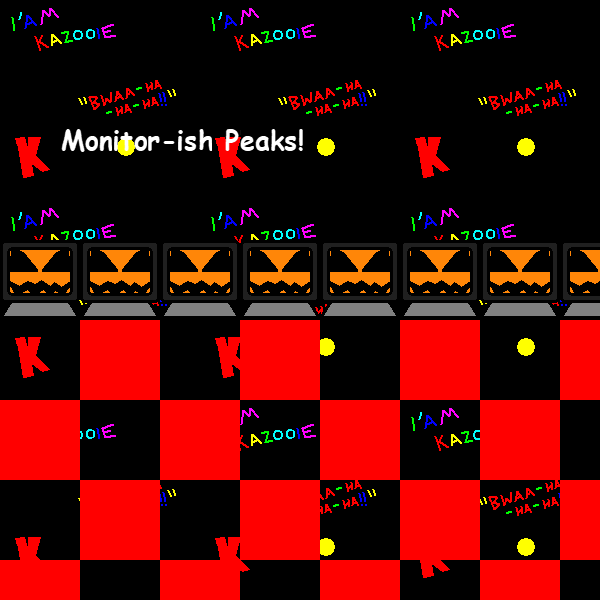 Referred to as "Monitor-ish Peaks!" instead of "Land of the Alien-Stocks!". The former name makes sense with the general Monitor theme of World 3. As for the latter name, the only thing it would make sense with is the boss at the end, but the enemies are just normal-looking Woodsters. Thinking back on the change of theme, I think the former Monitor theme made much more sense, considering I tried my best to keep the theme for the world, but... well, stuff happens all the time during development.