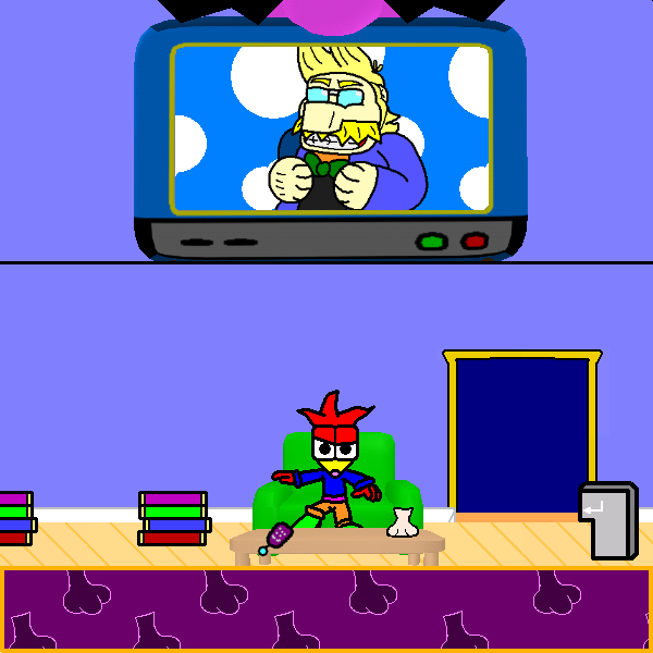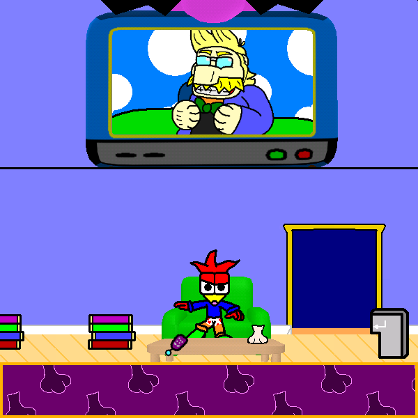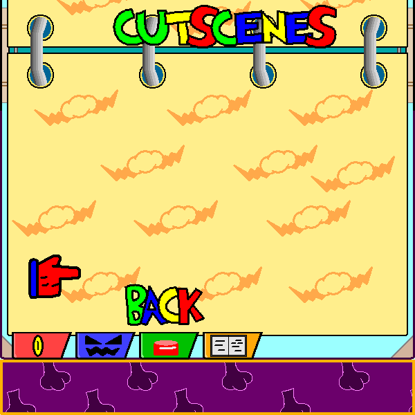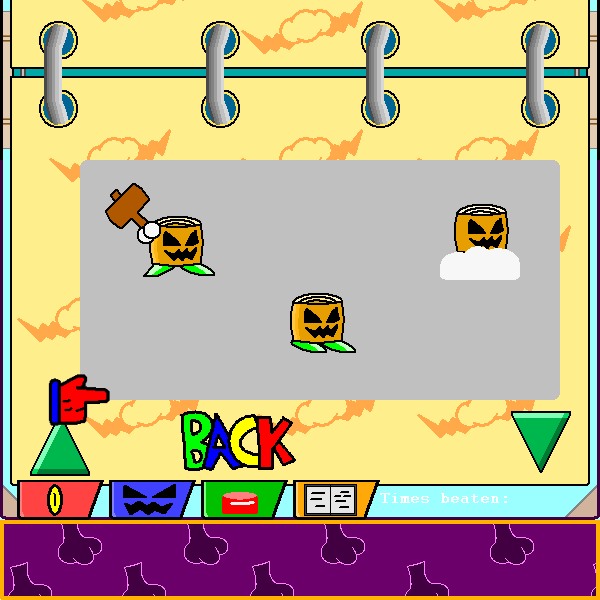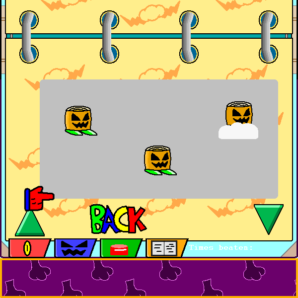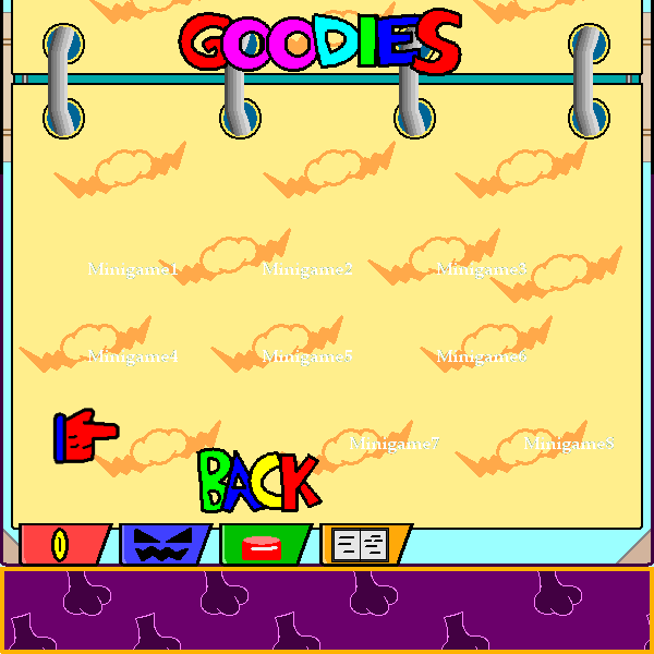 The leftover icons have been replaced with the minigames, although without any borders surrounding them. Interestingly, all eight of the options lead to the minigames in the exact order their rooms were created. I was planning to try and finish the other three minigames (Ya road hog!, Money Paradise, and Nose Cleaner). I figured that I didn't have any more time to work on them, with Money Paradise definitely being the one to go because I just couldn't figure out how to make the gameplay work, and Ya Road Hog! had been made redundant due to my work on the Beach Surfer minigame. Nose Cleaner meanwhile is a minigame idea I would like to revisit at some point, including Ya Road Hog!. But that'll be for a separate project though.