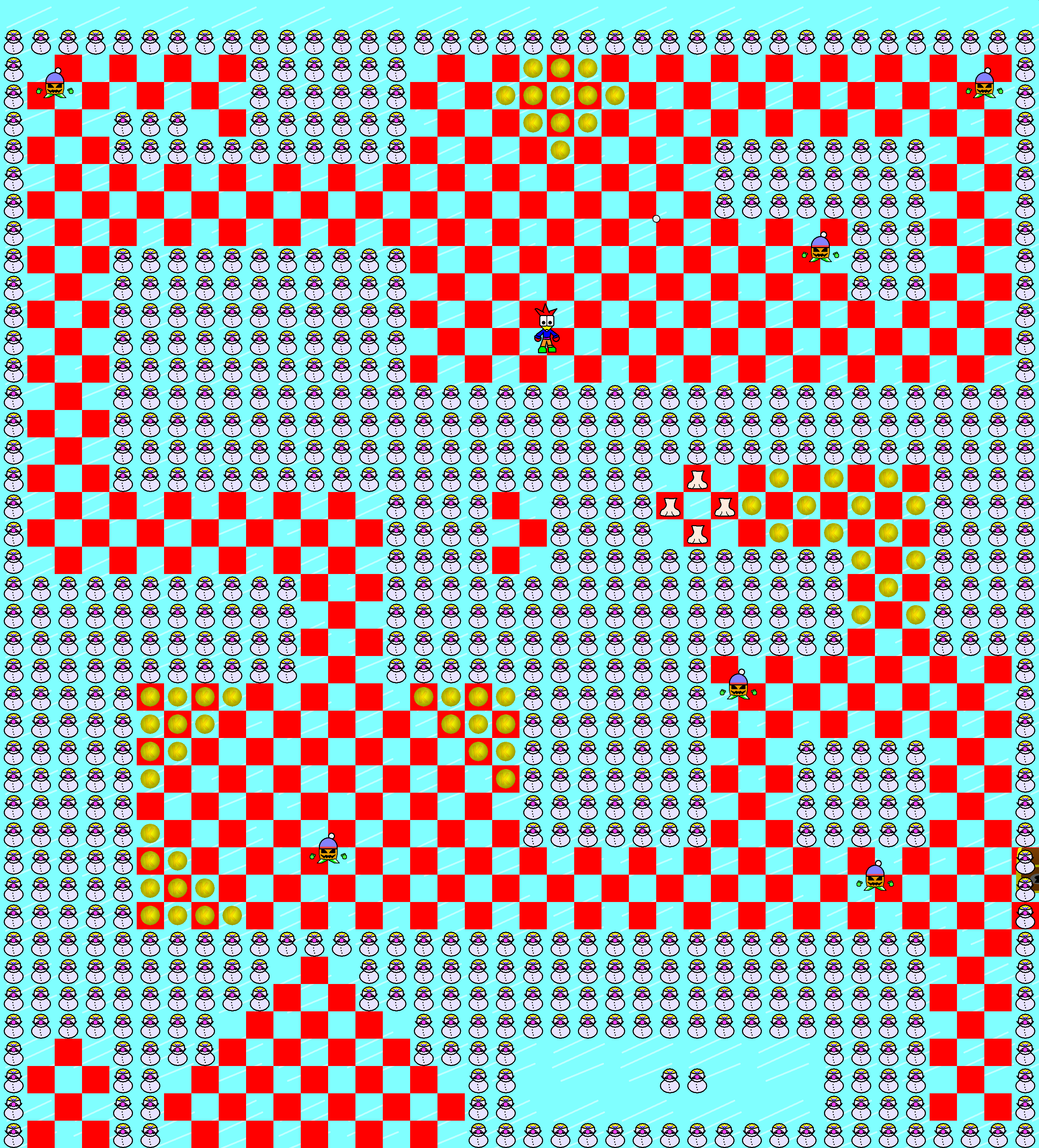 The hammer enemies and crate have been added. Like the first level of this world in demo 8.1, one of the hammer enemies are placed in the open. The intent was to let the player approach them from any direction. This is fine when running towards them on your own, but when TNT crates are involved a bug is exposed which makes the enemy just keep trying to hit the crate depending on the crate's placement.