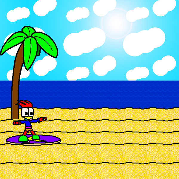 The sand now has a texture. It is extremely saturated here though. I remember making it look less saturated in the final game because I found it to be severly distracting as the background scrolled. As for this room, most of the contents had yet to be deleted.