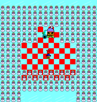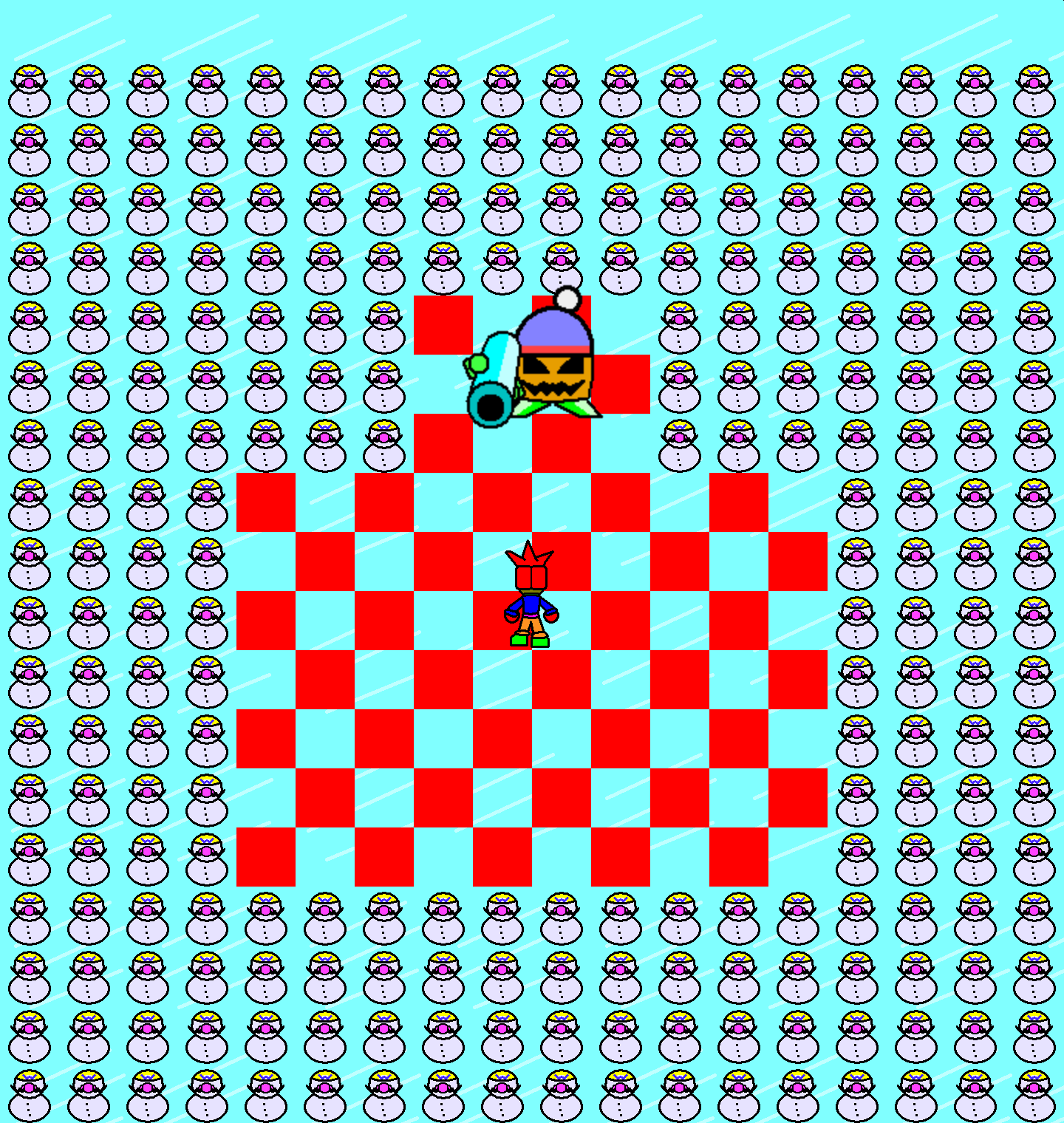 The height of the playfield has been shrunk from 7 tiles to 5. The two bottom rows of floor tiles were still left in along with the eight wall objects at the bottom left corner.