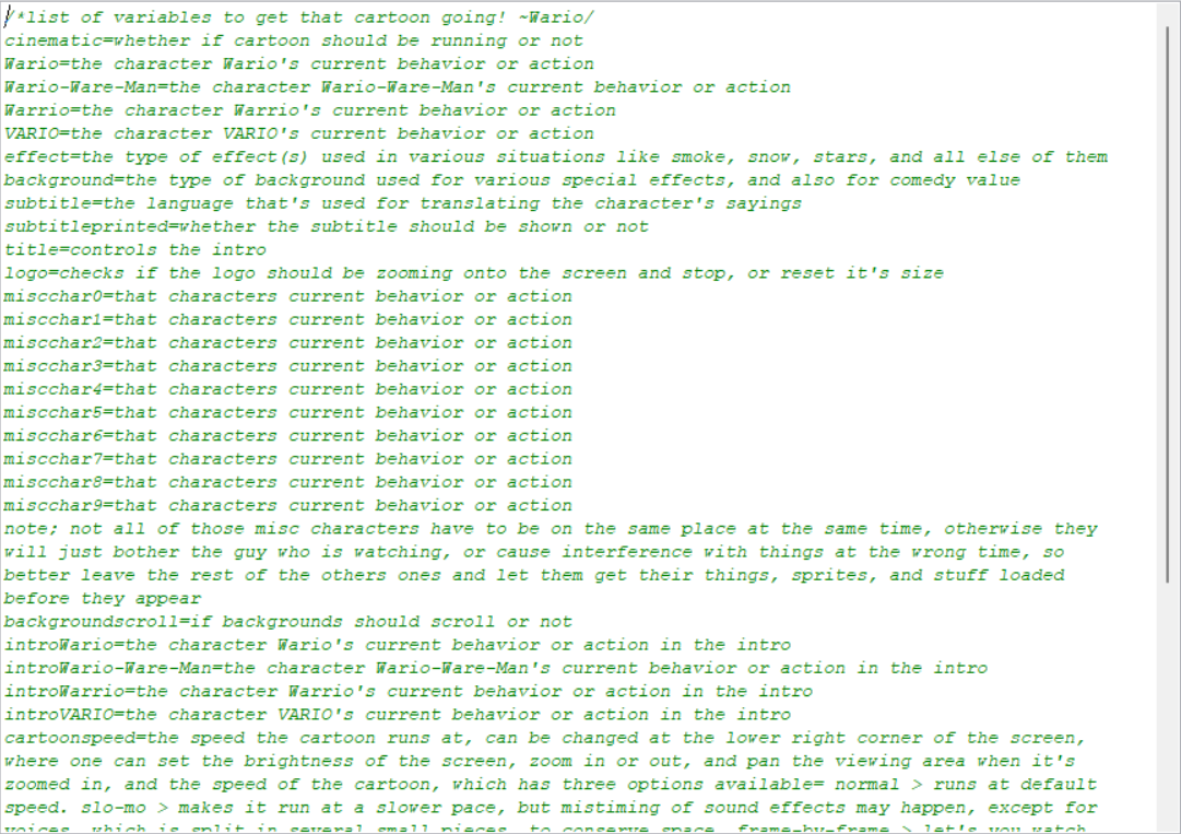 Just a pic of a notepad window showing how wide the window should be in relation to the spacing of the text. It was mostly applicable to this series because I was still writing the stories with notepad at the time. After The Wario Show I started writing my newer stories with OpenOffice, eliminating the need for keeping the text spaced within the bounds of the window.